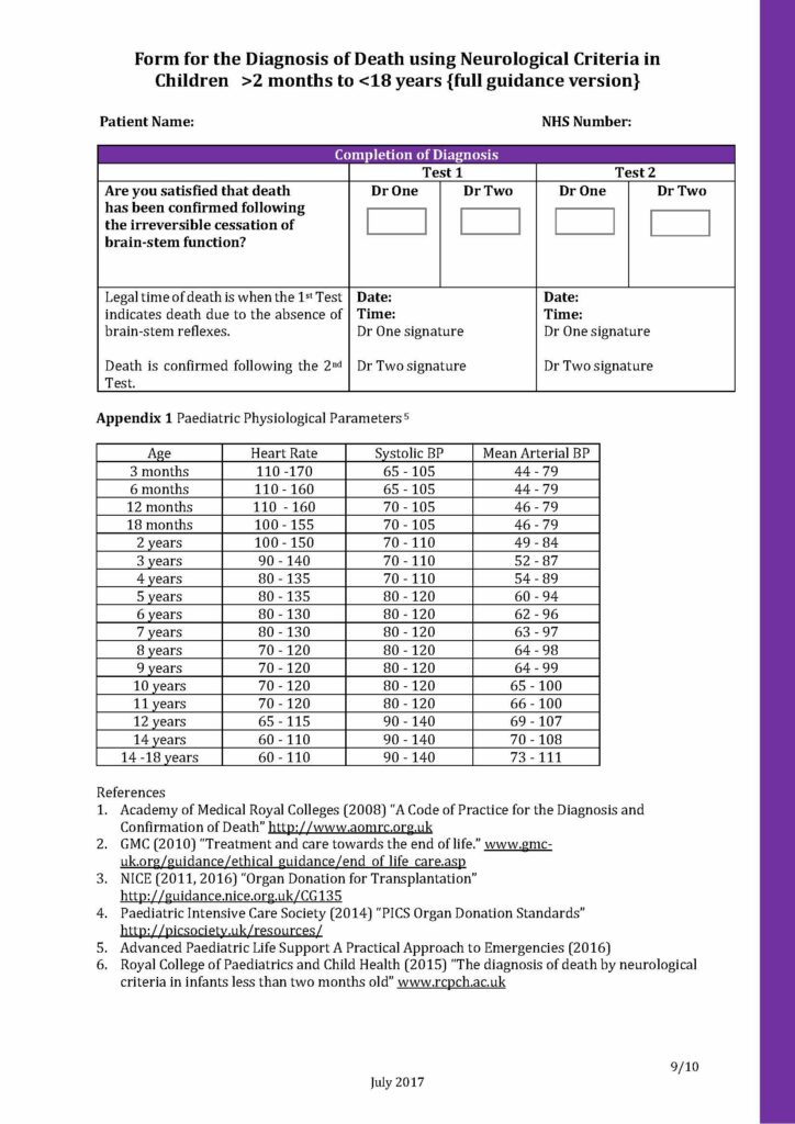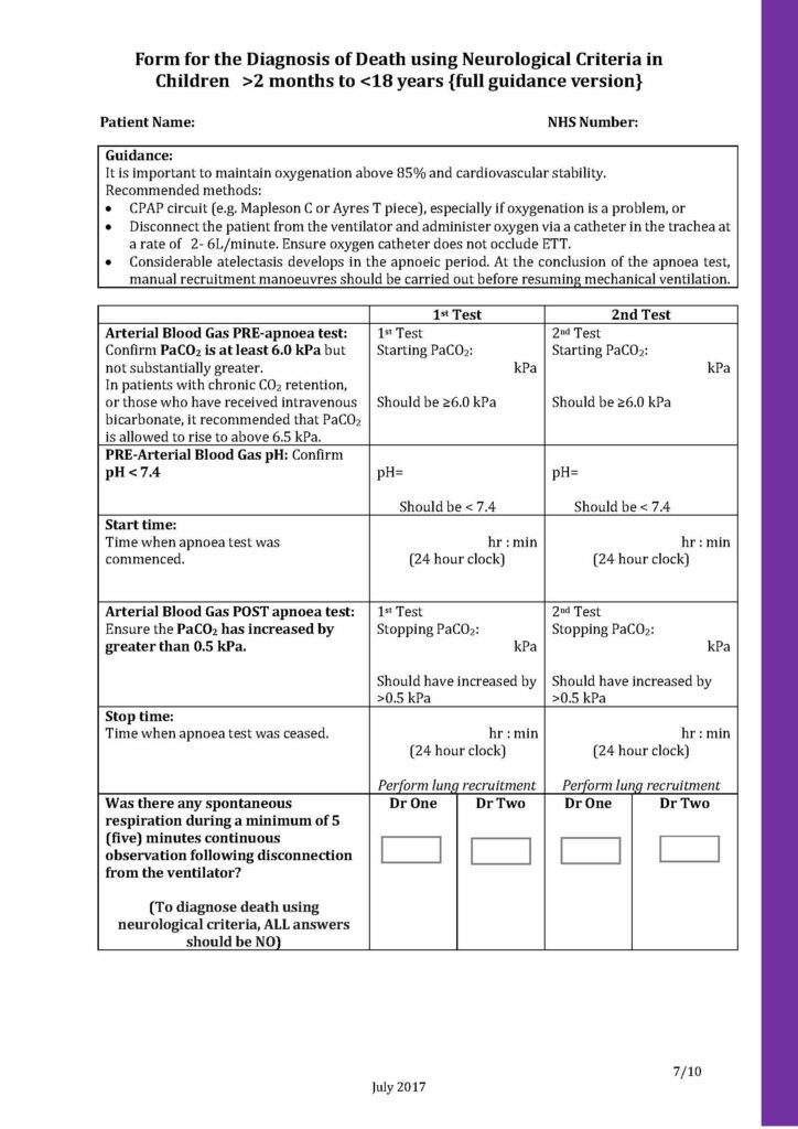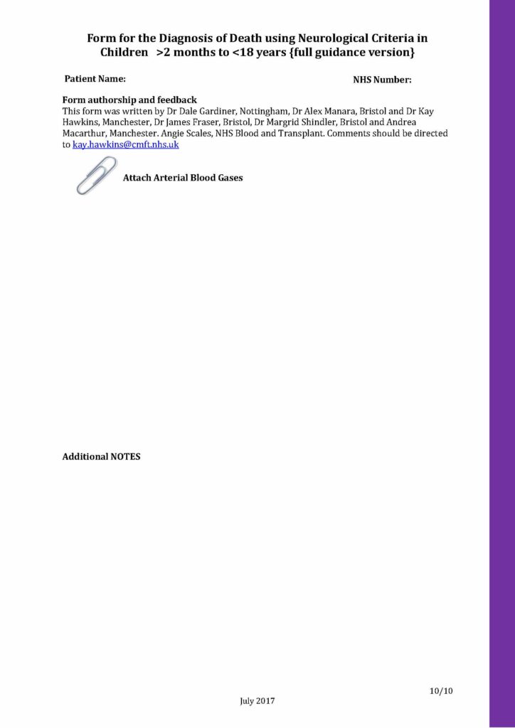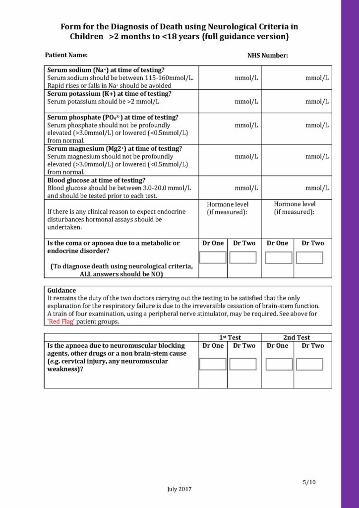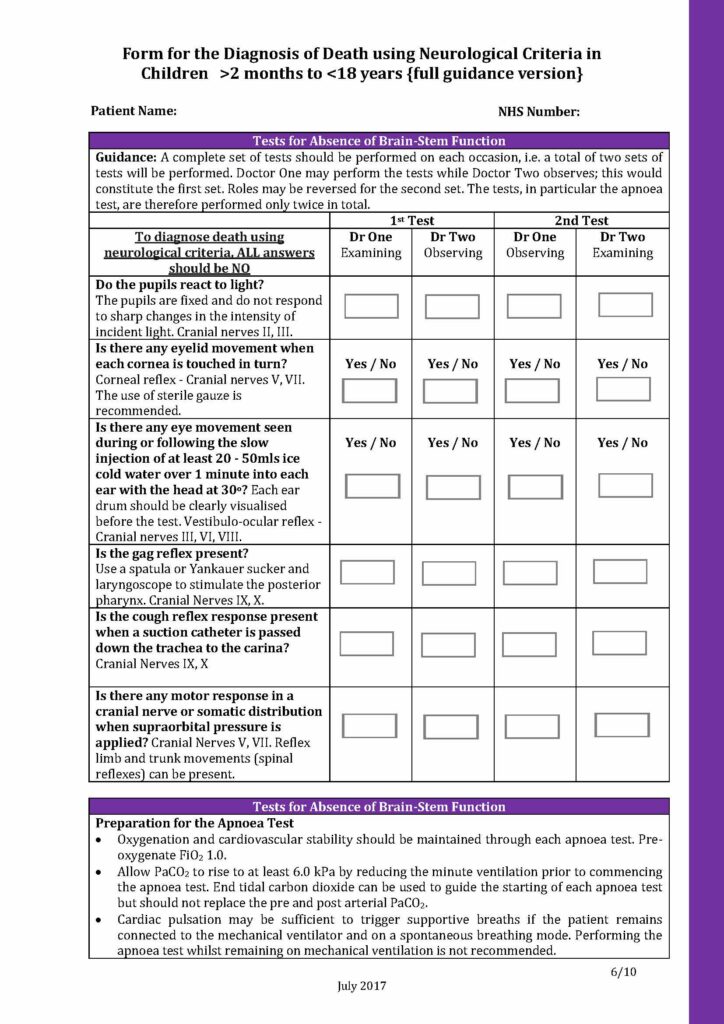 Below you will see a sample of the Form for the diagnosis of death using neurological criteria 2 months to 18 years editable PDF.