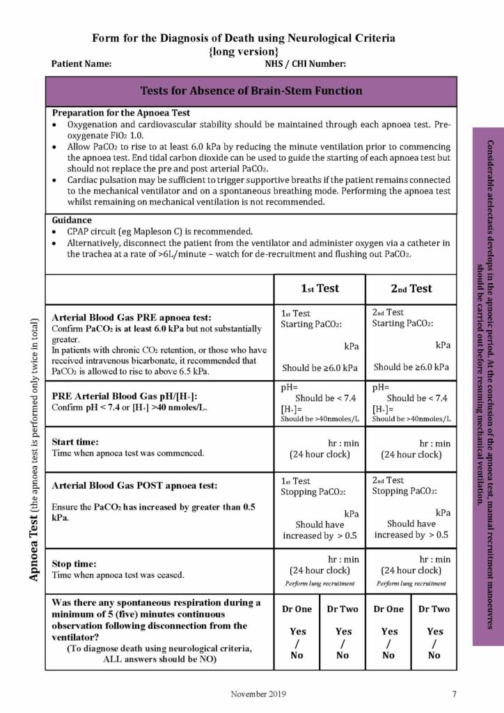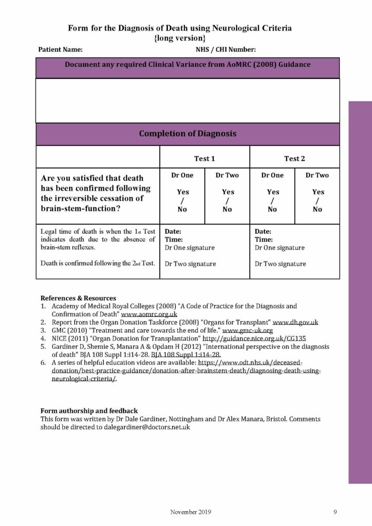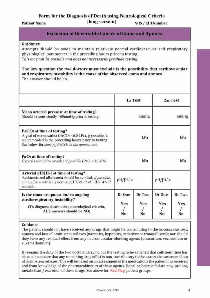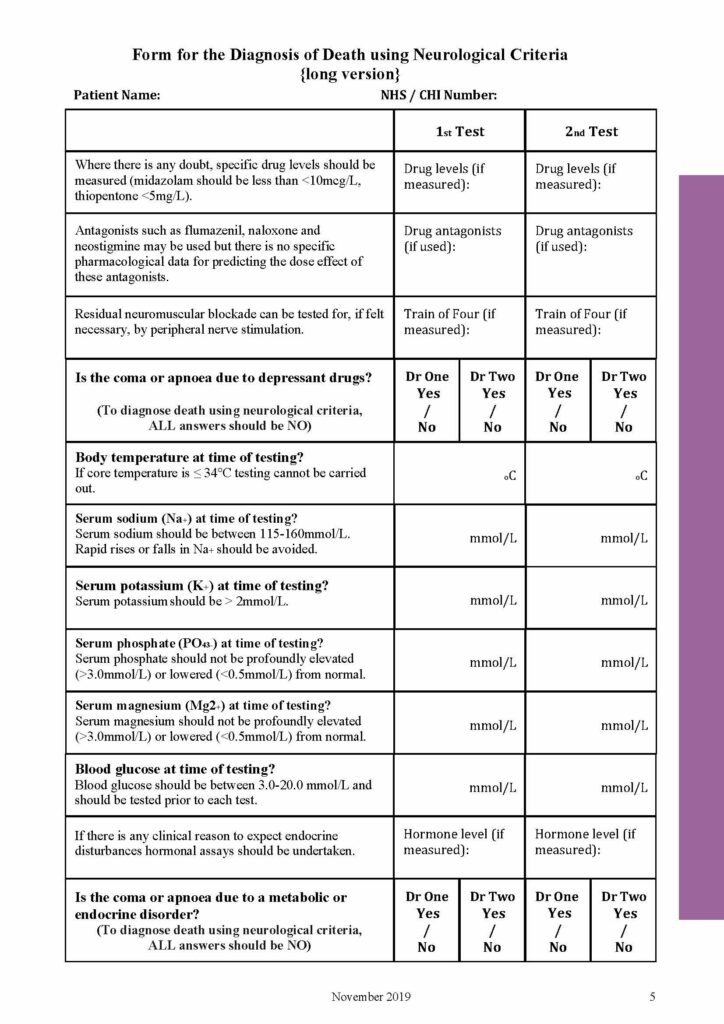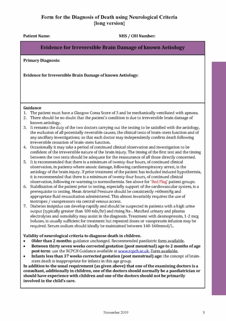 Below you will see a sample of the Form for the Diagnosis of Death using Neurological Criteria PDF Nov 2019.